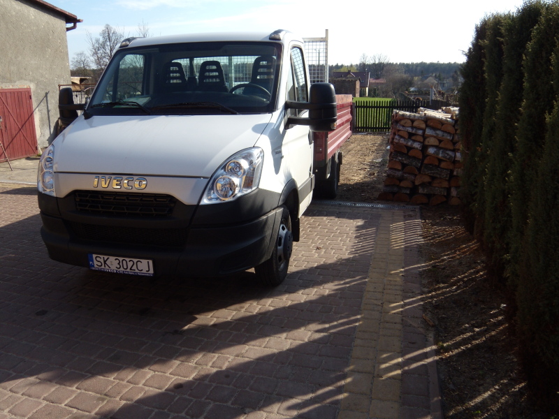 Dostępne mamy trzy samochody, na dwa z nich zabieramy maksymalnie 5m, z kolei trzeci mieści na sobie 10m. Są to oczywiście wywrotki, drewno wysypujemy we wskazane miejsce.